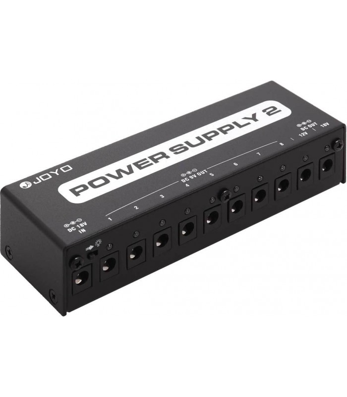 Fuente de alimentación compacta con 10 salidas. Proporciona alimentación limpia y estable para pedales analógicos y digitales.