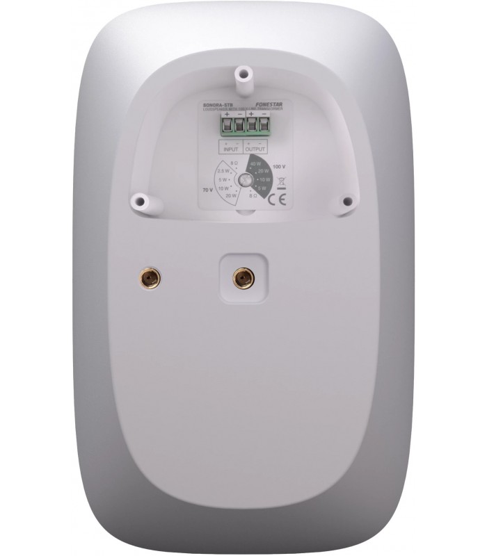 Altavoz de sonorización de baja impedancia con transformador de línea 100 V, preparado para uso en exteriores con protección contra agua y corrosión. Ofrece un sonido de alta calidad, sin distorsión, y es fácil de instalar.