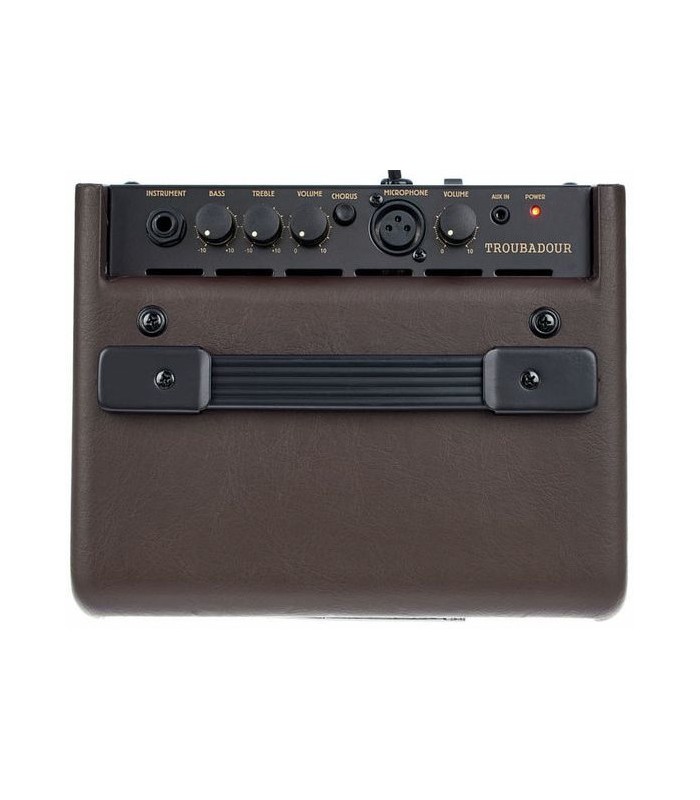 Este amplificador para guitarra acústica está equipado con una entrada para instrumento y otra para micrófono.