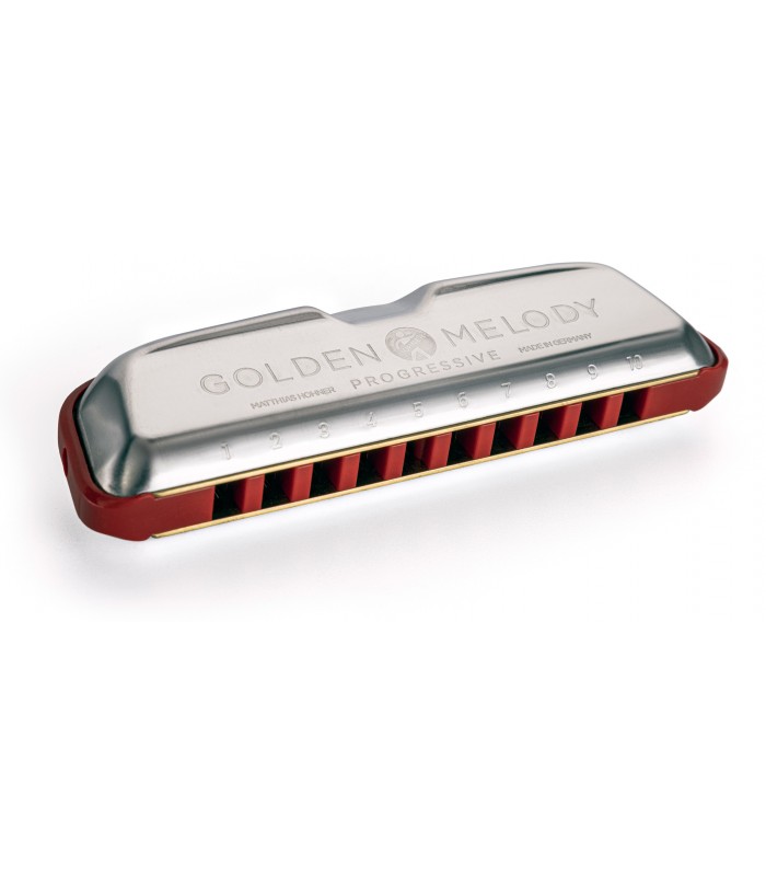 La Golden Melody Progressive es el único modelo diatónico con afinación temperada. Esto la convierte en la favorita de los músicos de jazz que necesitan tocar con otros instrumentos en todas las posiciones. Su sonido puro es ideal para destacar como armónica solista.