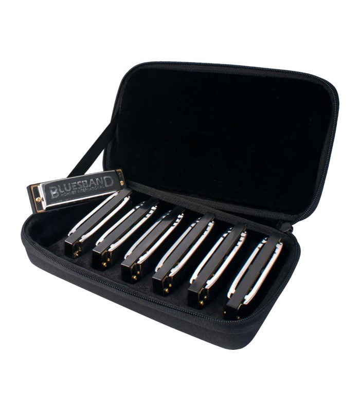 Contiene siete armónicas Blues Band con las tonalidades Do, Re, Mi, Fa, Sol, La y Sib.