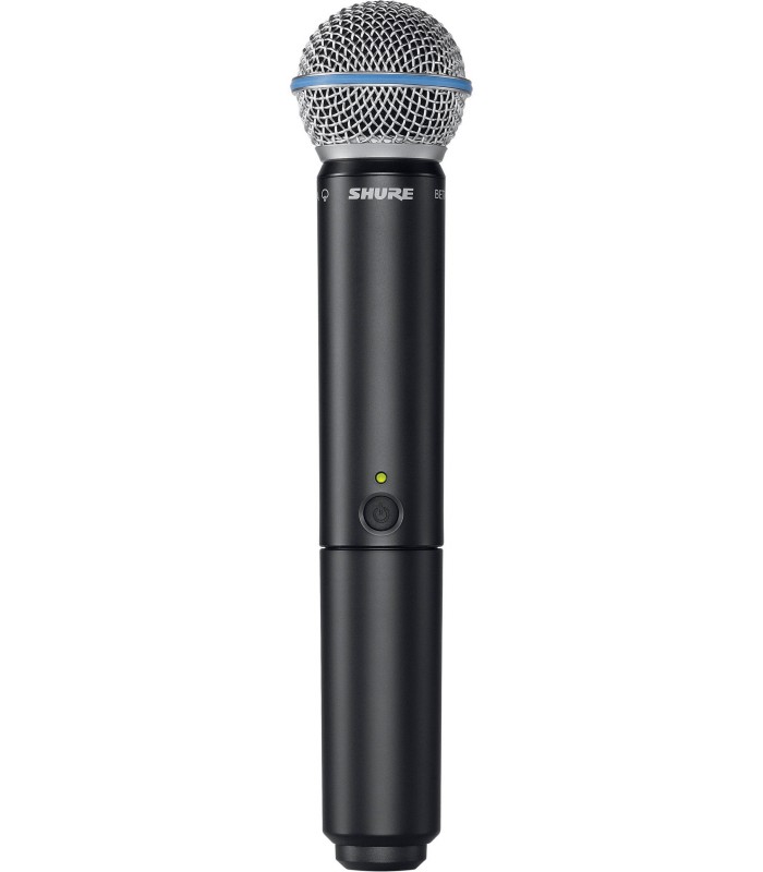 Micrófono dinámico con transmisor BLX2 y cápsula BETA58 integrada.