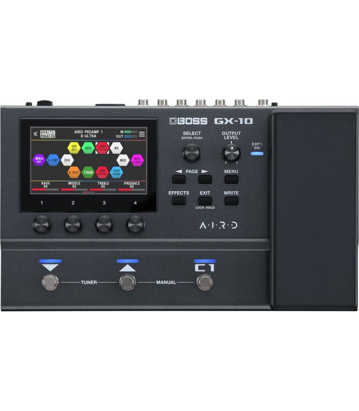 El GX-10 es un procesador de efectos y amplificadores para guitarra y bajo, equipado con el mismo generador de sonido y pantalla que el GX-100.